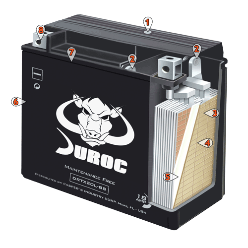 Todo el ácido se absorbe en las placas y separadores especiales, sin dejar posibilidad de fugas de ácido en las piezas