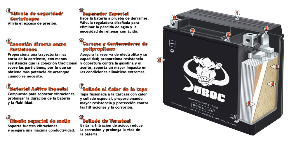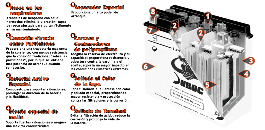 Siendo un bloque particionado, incrementa su potencia máxima, resistente a la corrosión para una mayor duración.